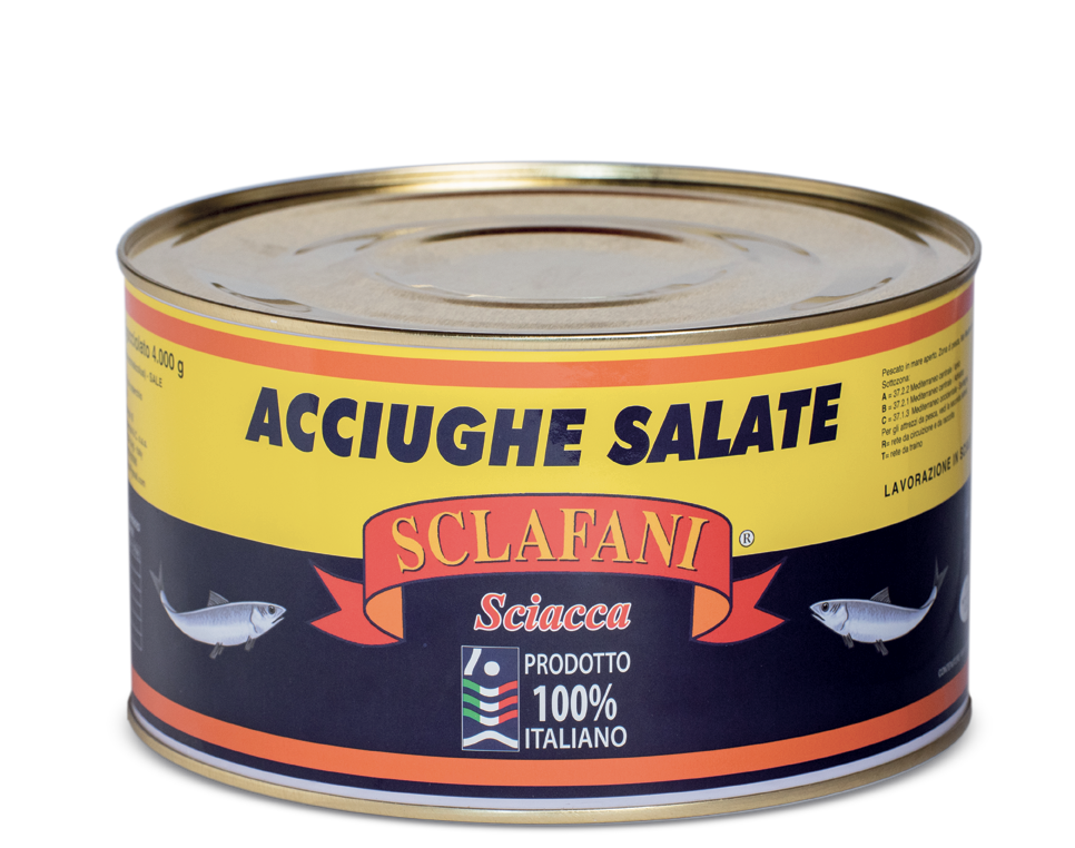 L’acciuga sottolio e salata, che va da 80 g a 10 kg